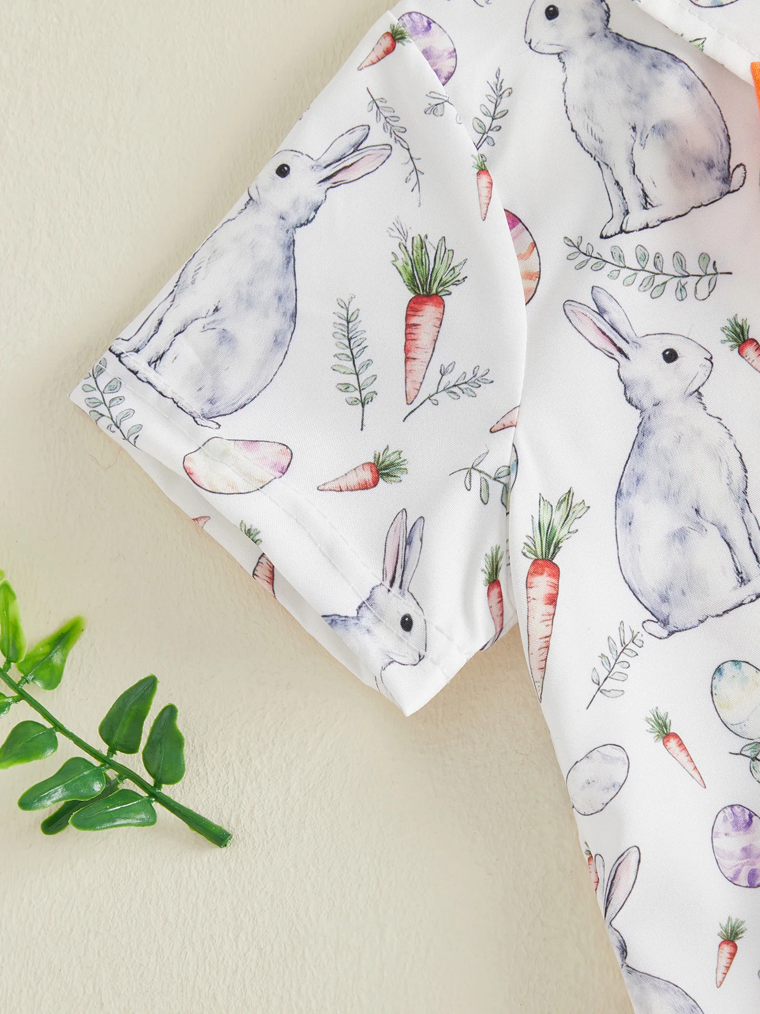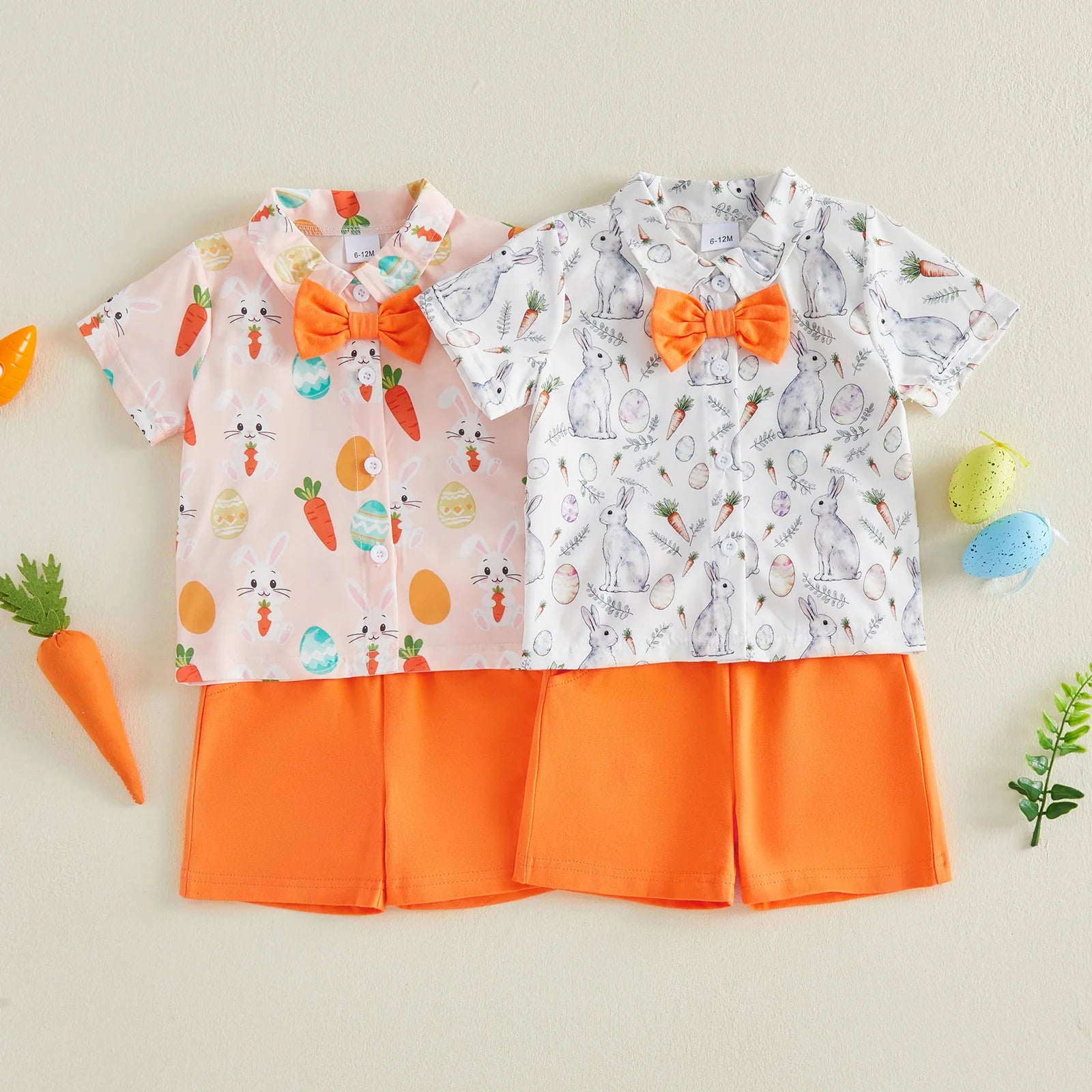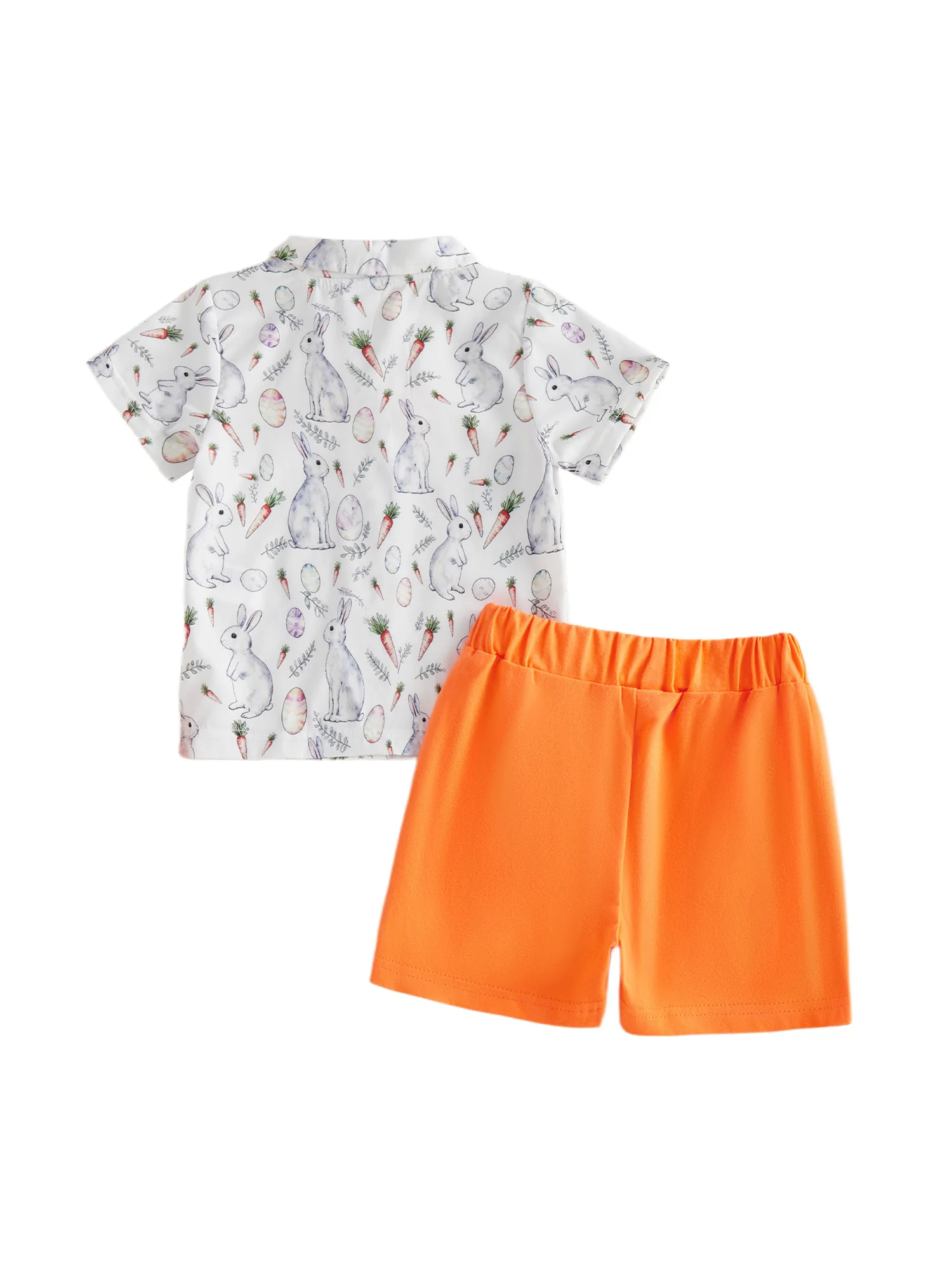 Toddler Boy Easter Outfit Bunny Carrot Print Short Sleeve Button Down Shirt Solid Shorts 2 Piece Gentleman SetSize (cm):