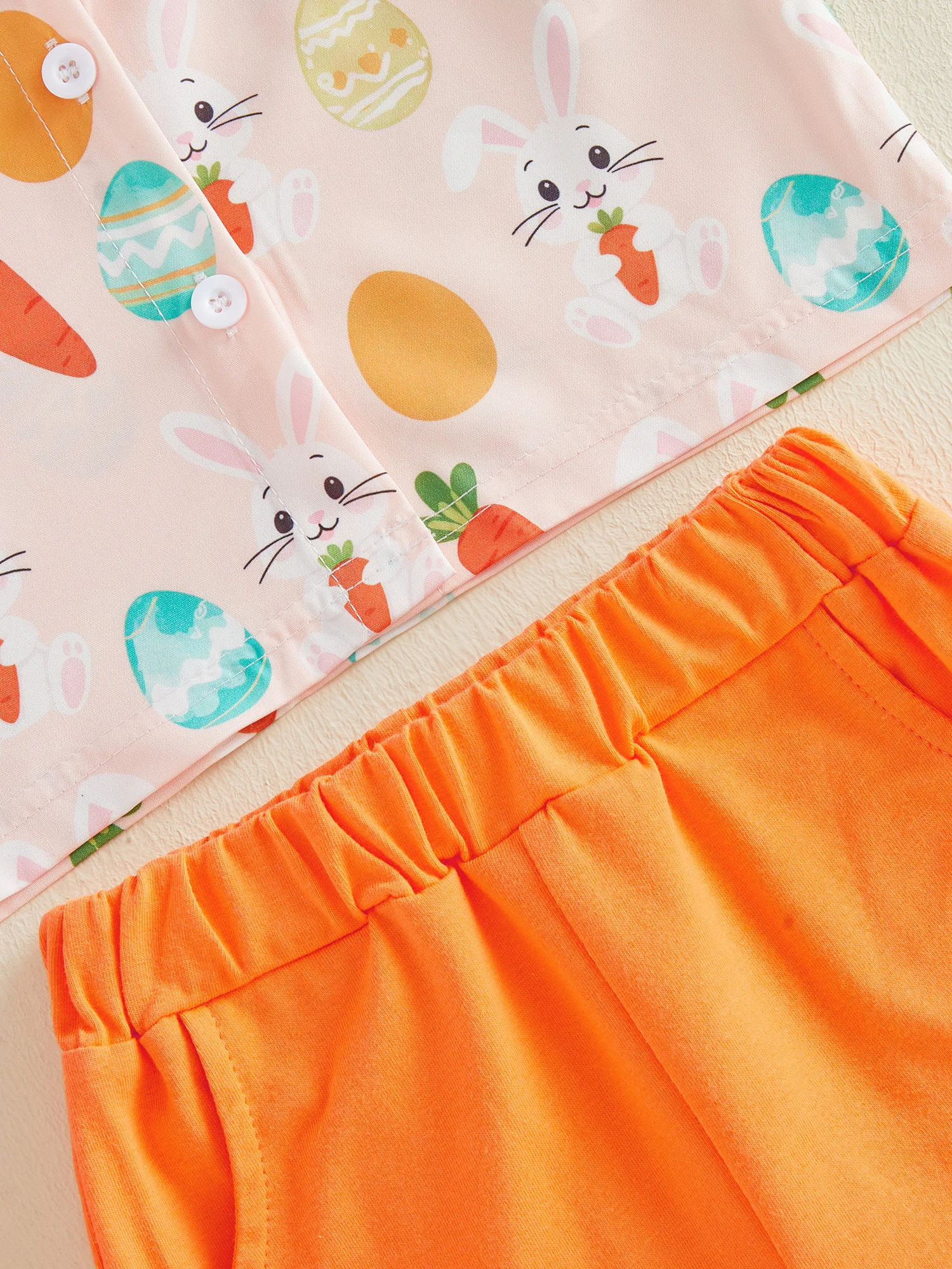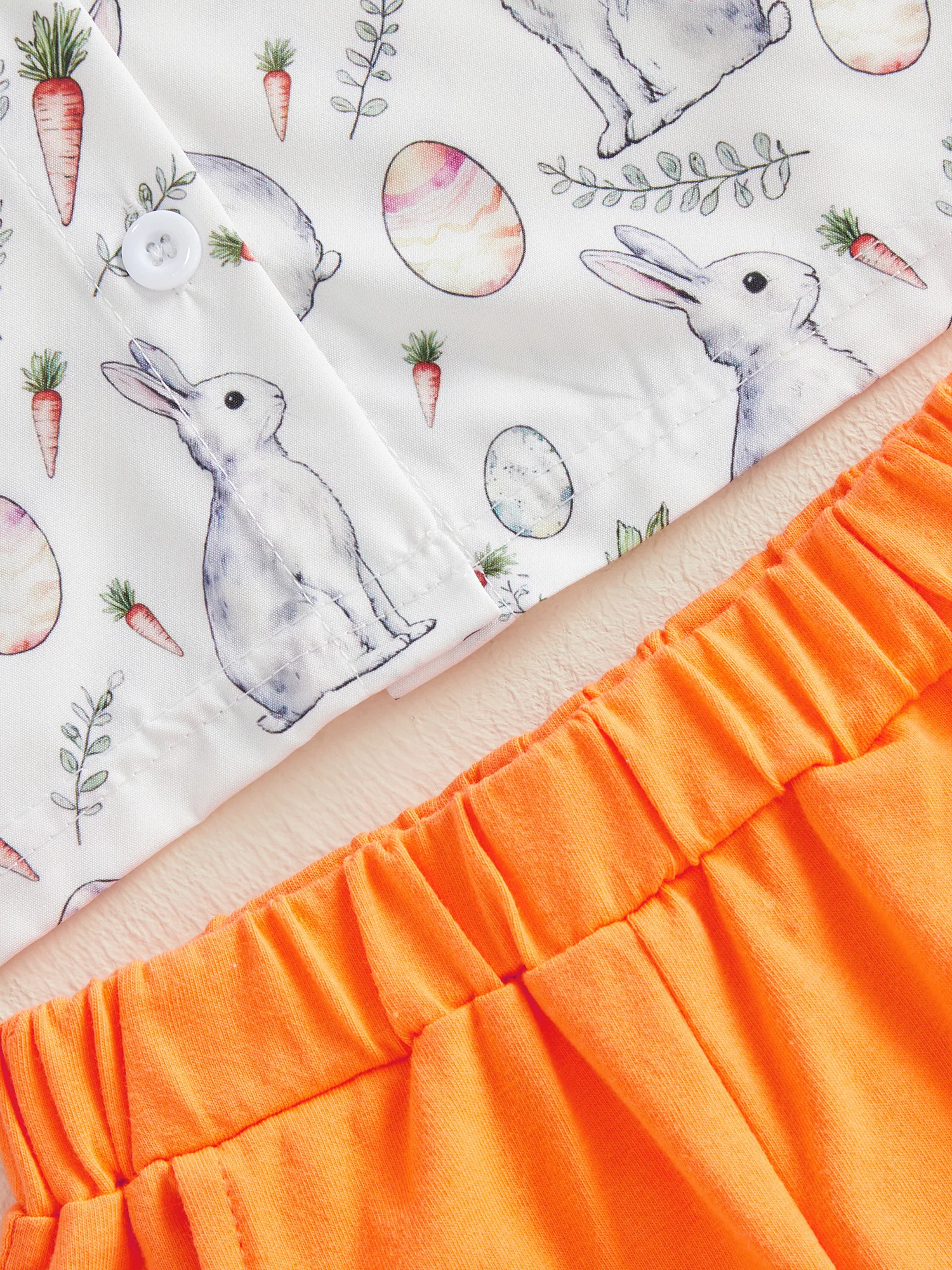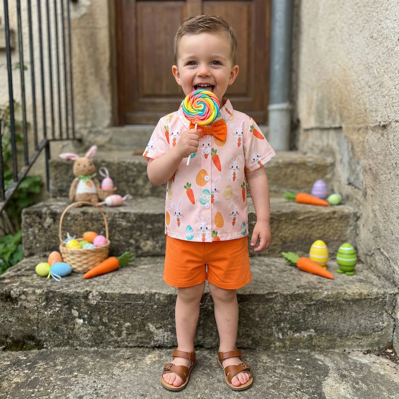 Toddler Boy Easter Outfit Bunny Carrot Print Short Sleeve Button Down Shirt Solid Shorts 2 Piece Gentleman SetSize (cm):