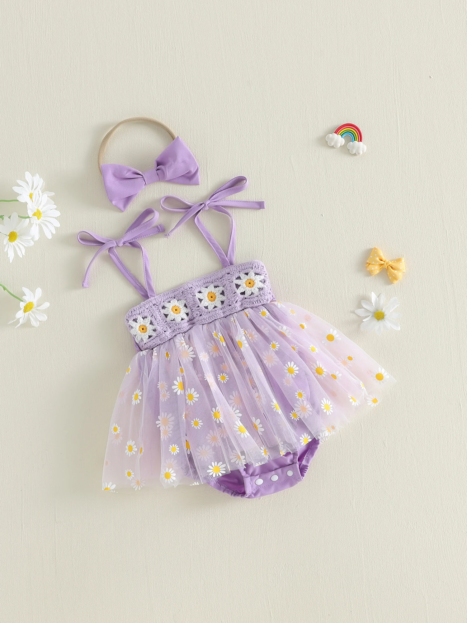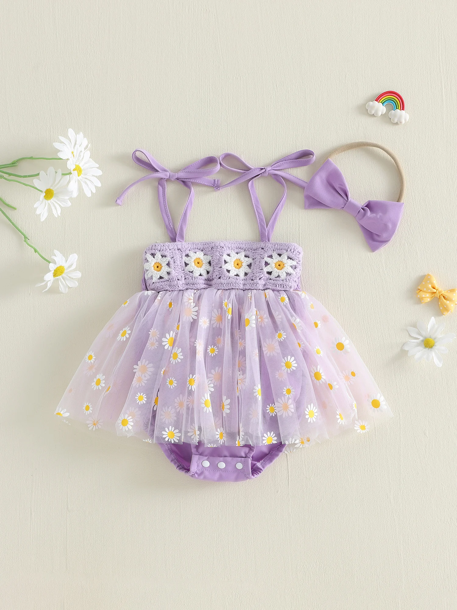 Newborn Girl Outfit, Tie-up Sleeveless Flower Patchwork Romper Dress with Bowknot Hairband Summer ClothesThe baby girls summer outfit is cozy and very soft to wear, perfect for keeping your little one cool and comfortable during the hot summer months..