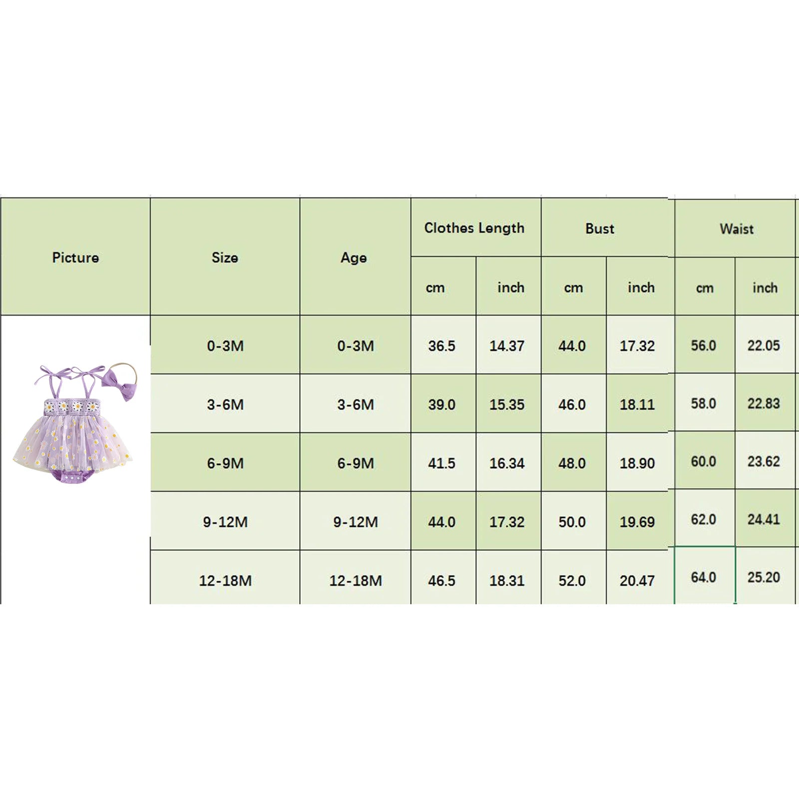 3-6M Length: 15.35 Bust: 18.11 Waist: 22.83 Advised Age: 3-6 Months