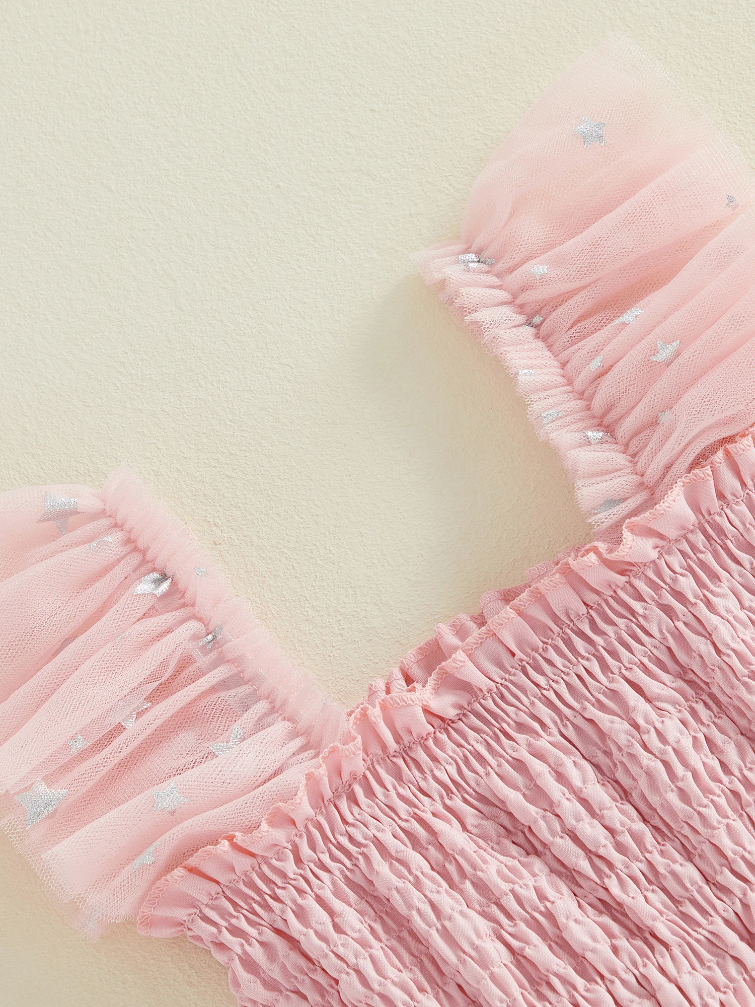 Little Toddler Girl Easter Dress Casual A Line Carrot Patch Star Smocked Flying Sleeve Ruffled Mesh DressSize (cm):