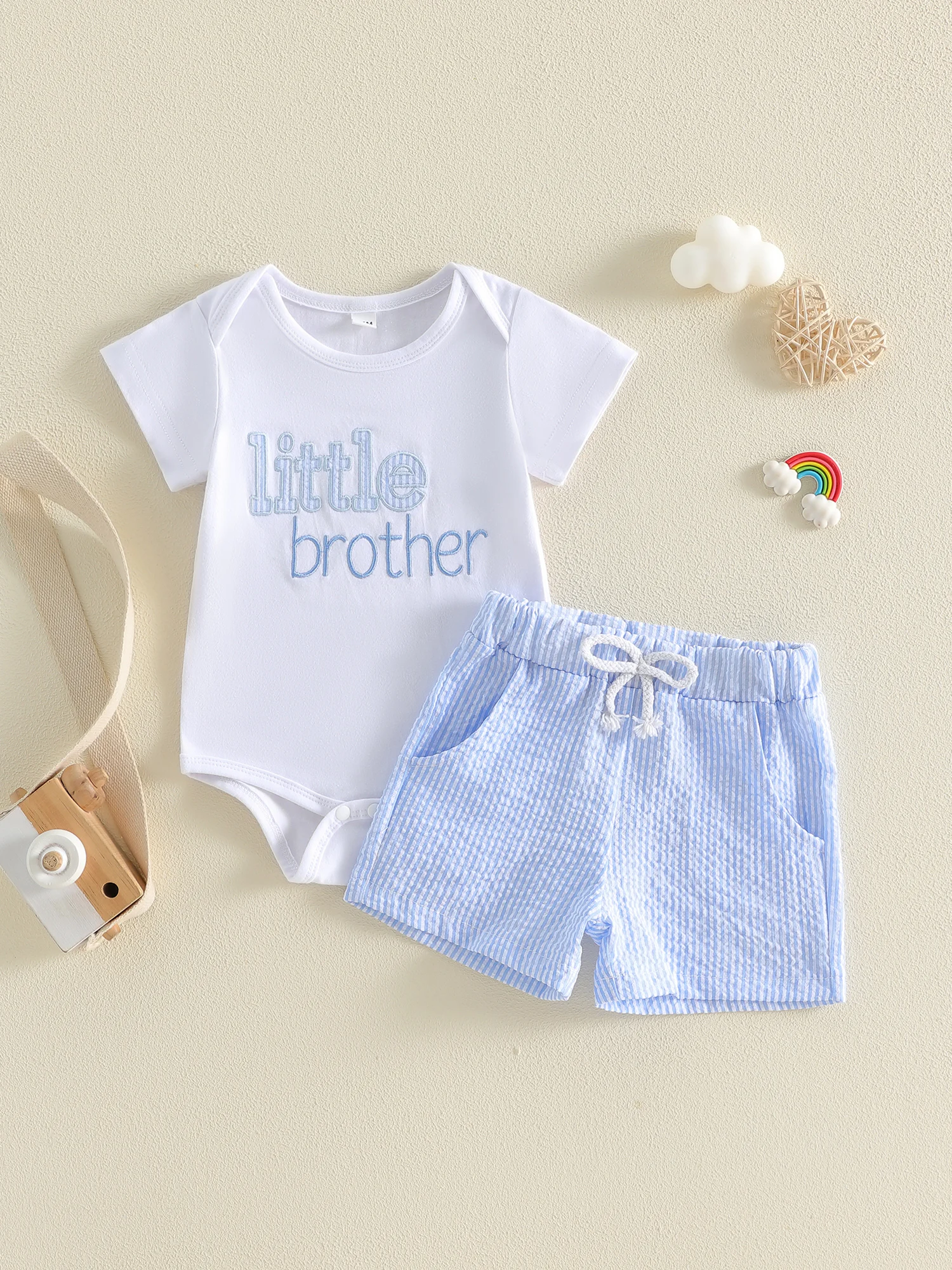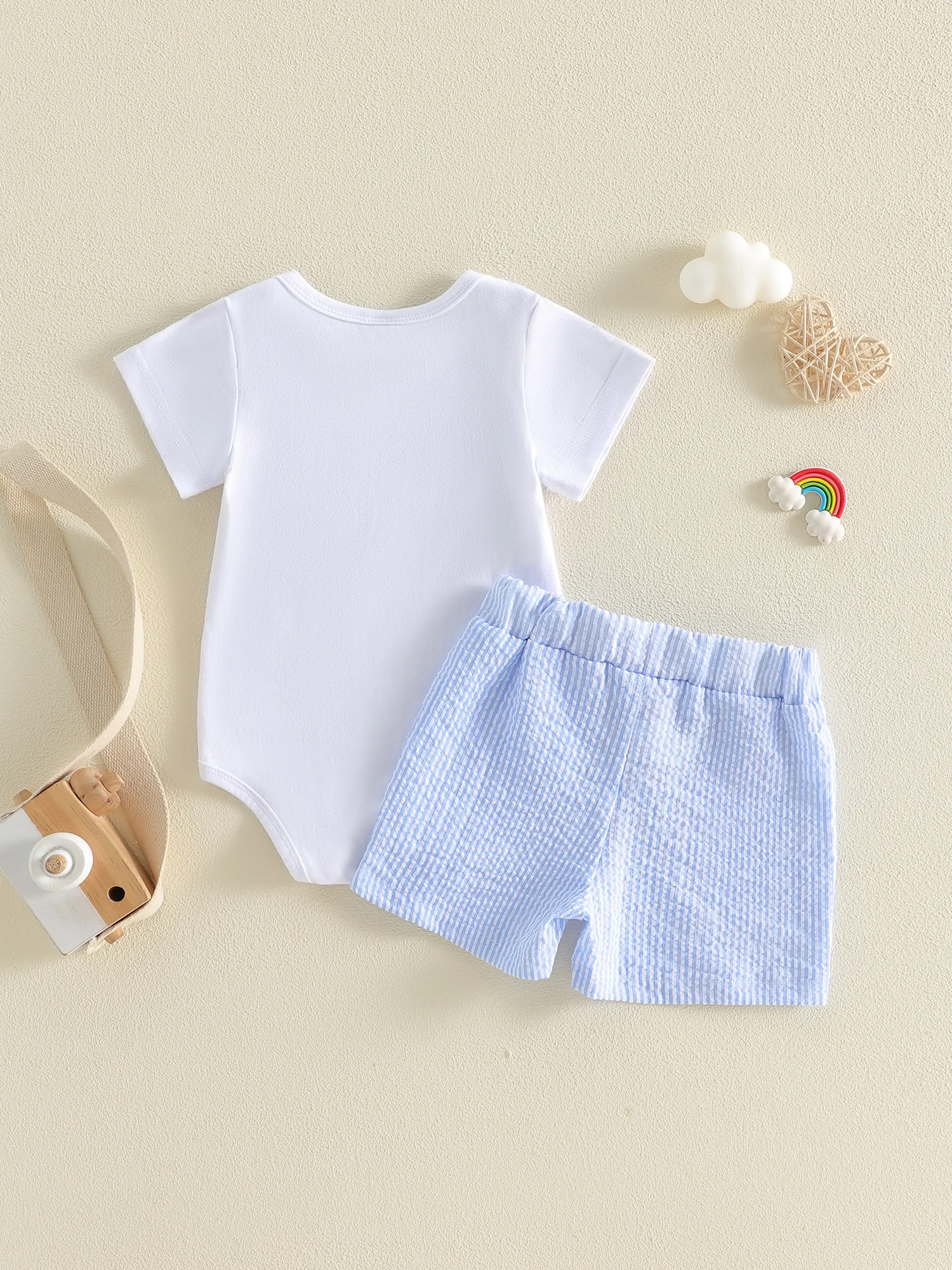Baby Boys Summer Shorts Sets Short Sleeve O Neck Letter Print Romper and Drawstring Striped Shorts OutfitsSize(cm)