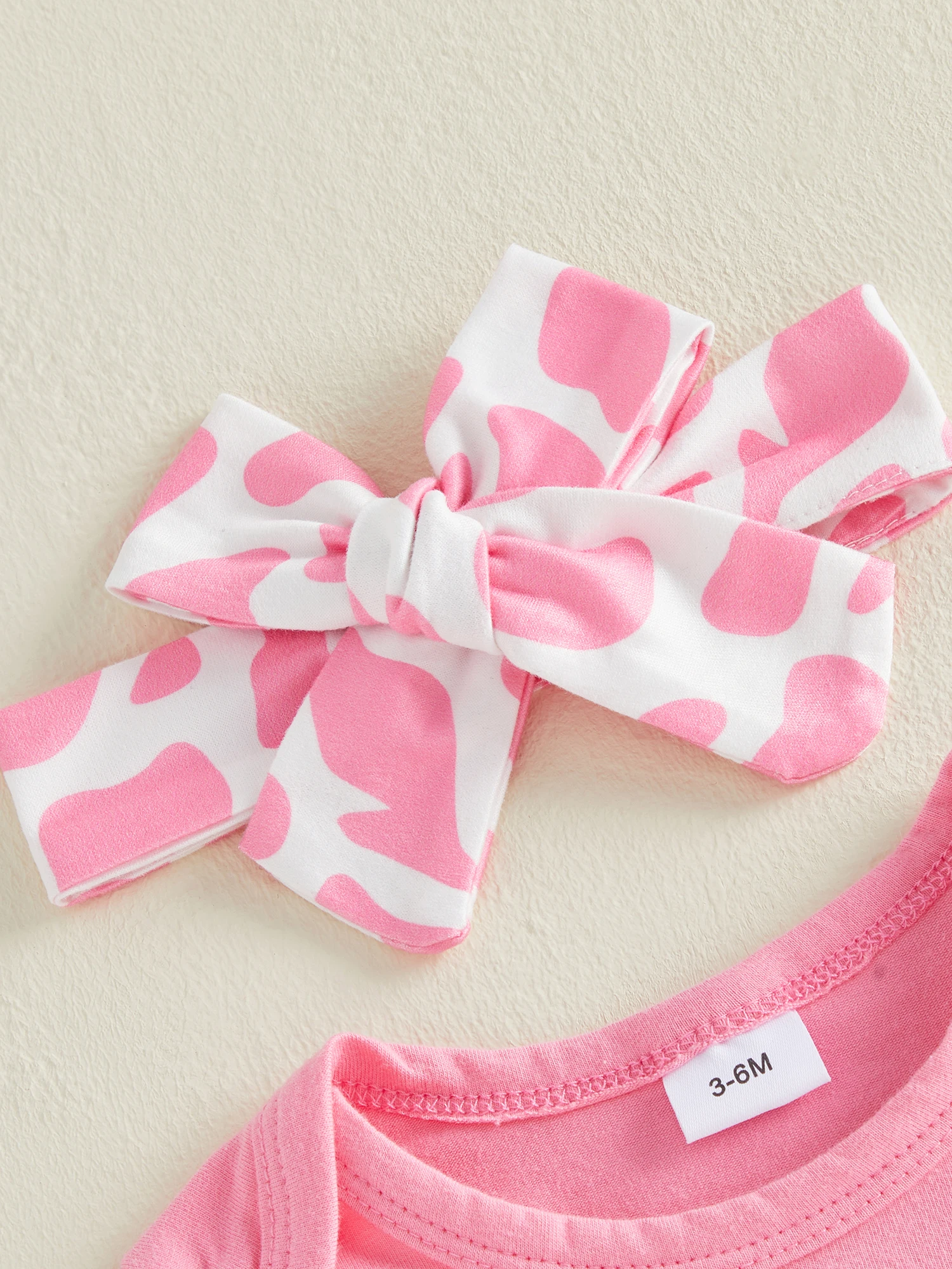 Baby Girl Summer Outfits Letter Boots Print Round Neck Short Sleeve Romper Cow Pattern Print Tassel Shorts Headband 3Pcs Clothes SetSize (cm):