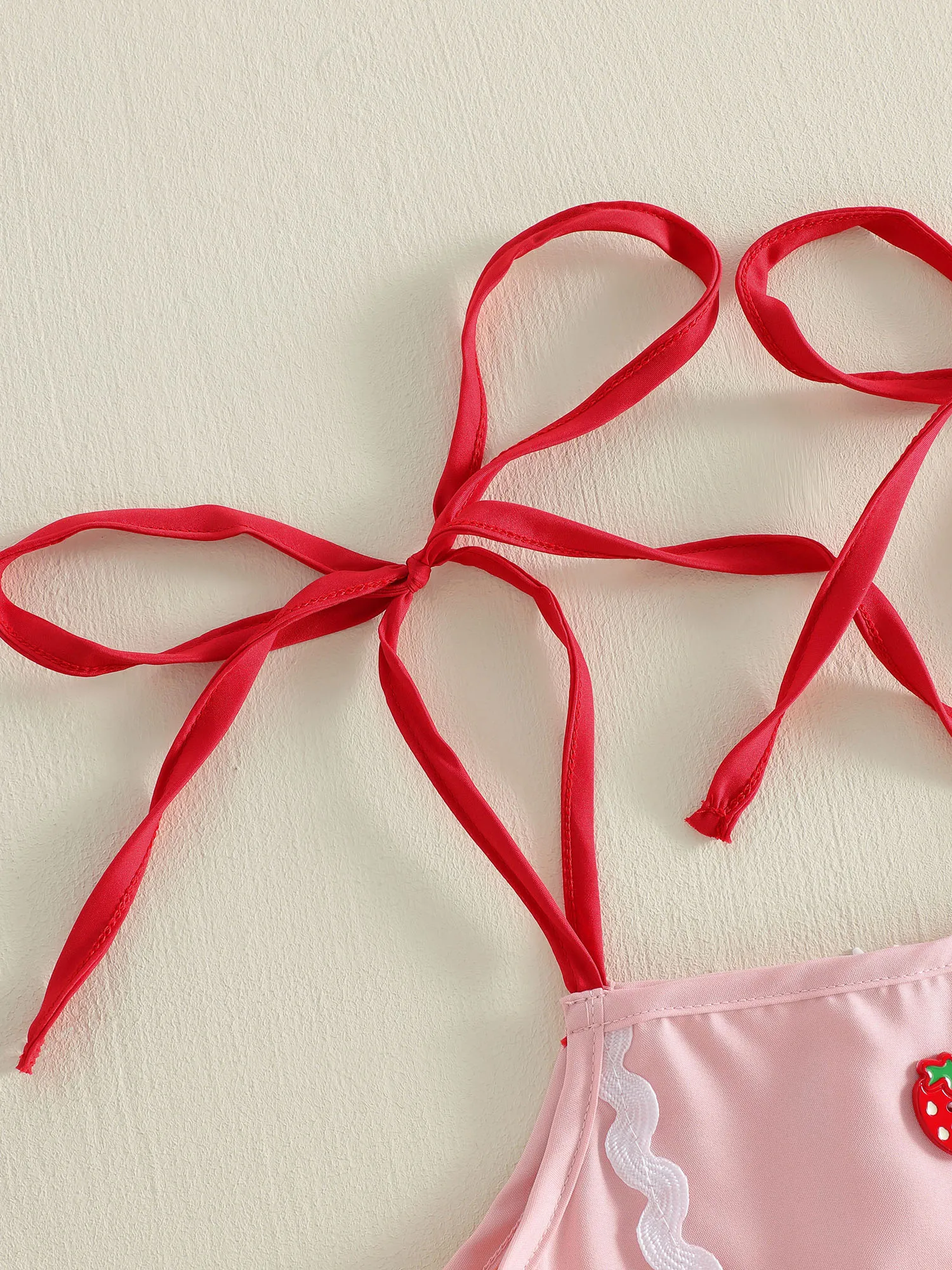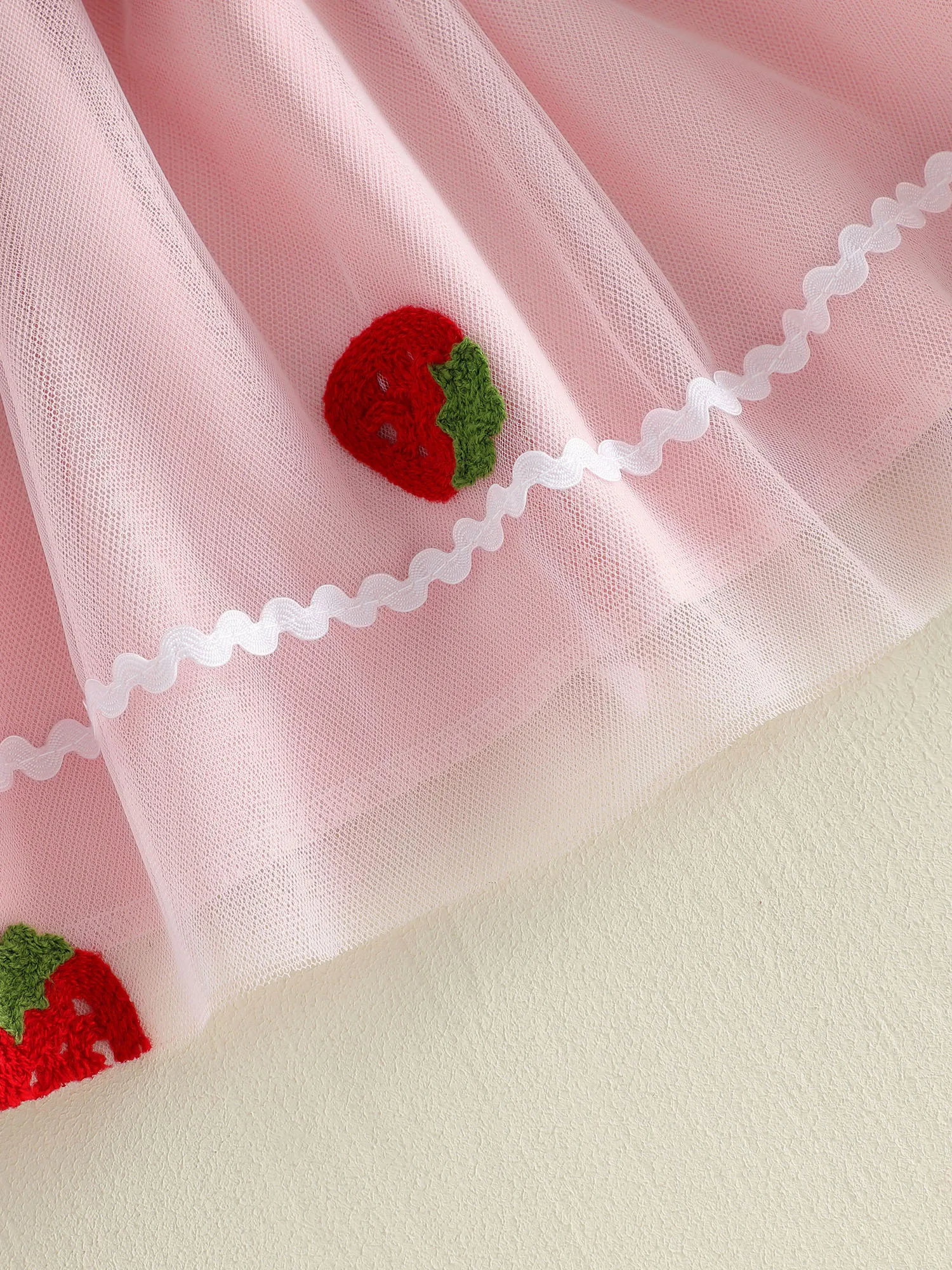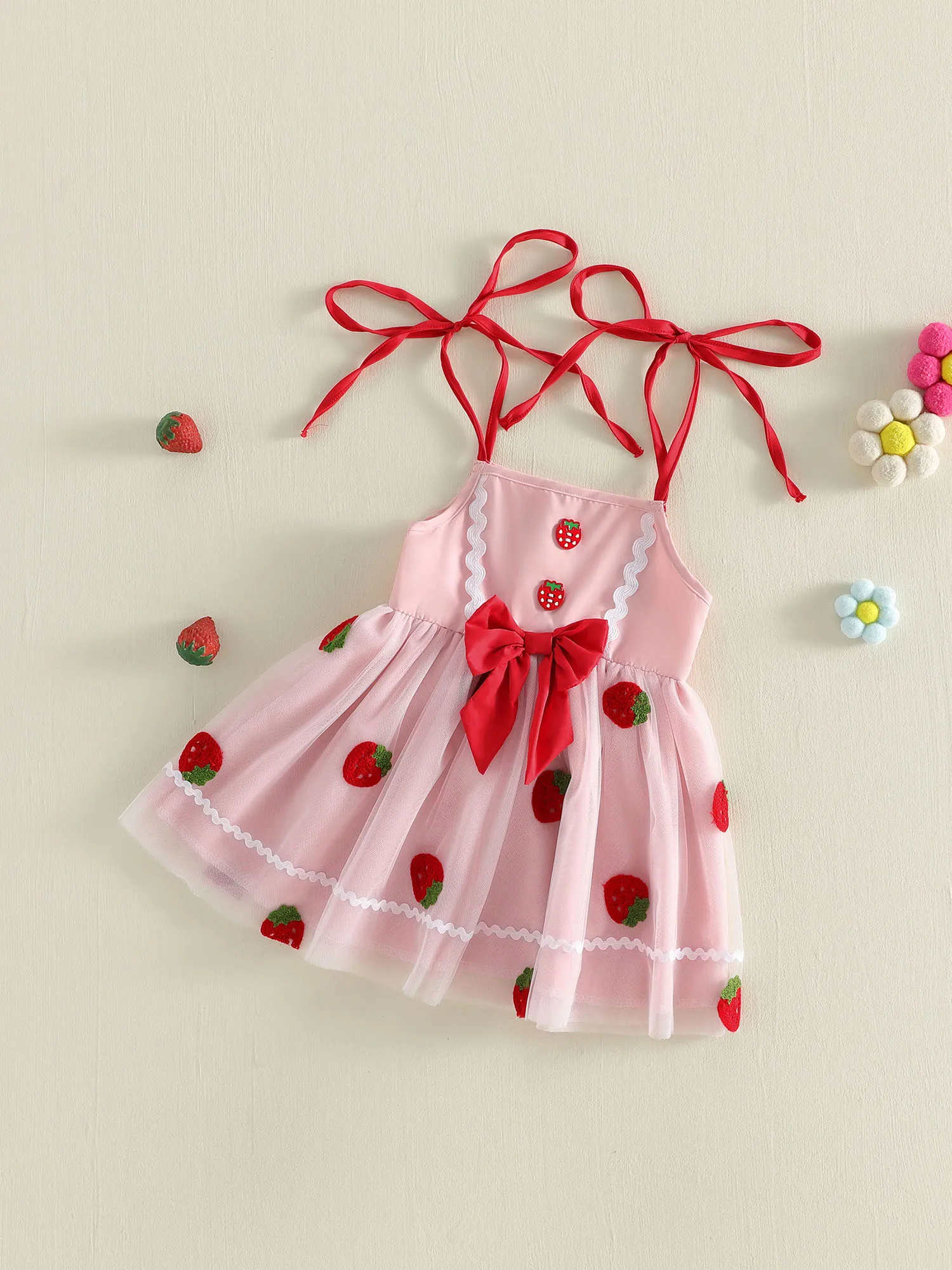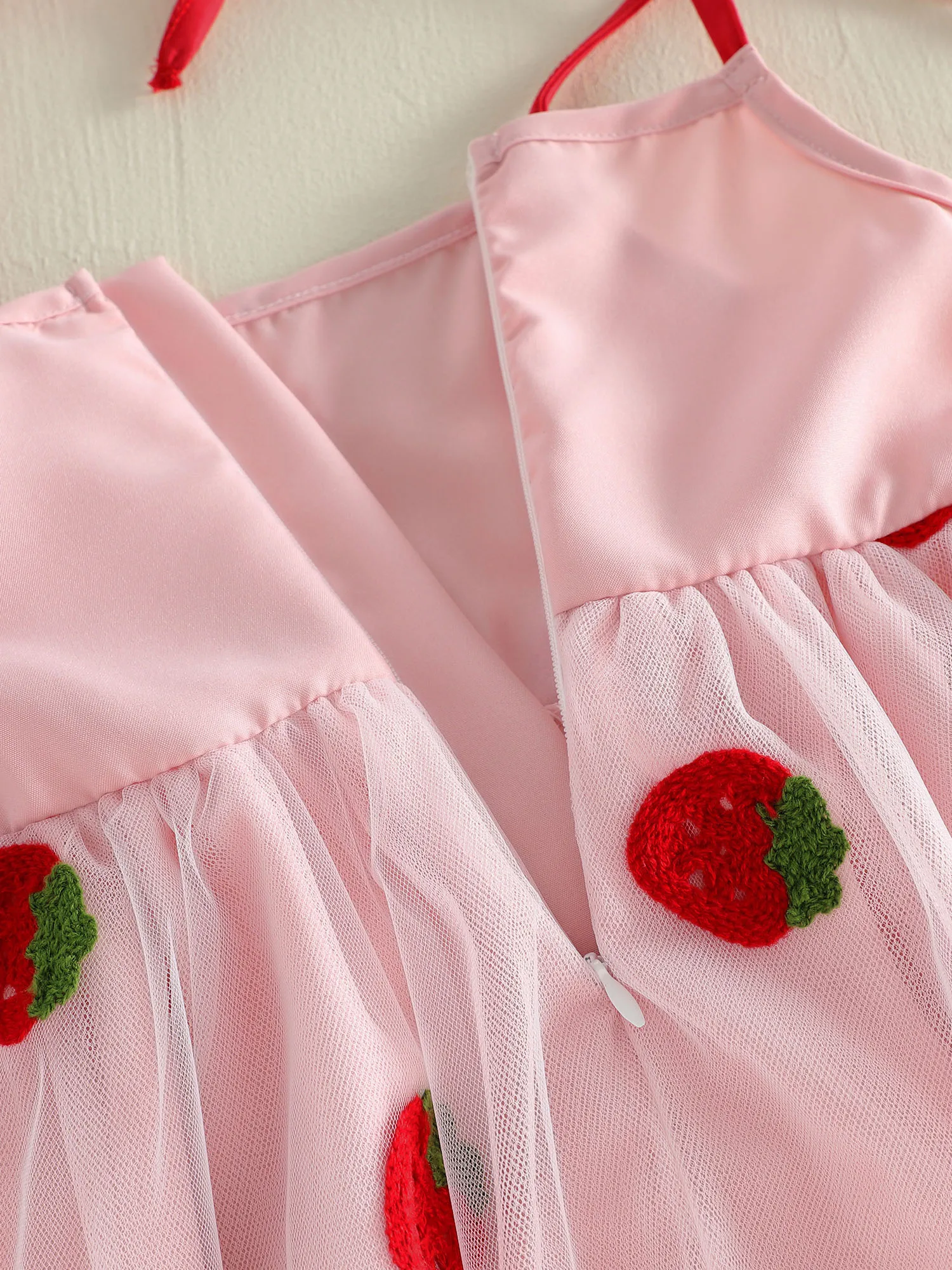 Toddler Girl Summer Sleeveless Dress Tie-Up Shoulder Strap Strawberry Tulle A Line DressSize(cm)