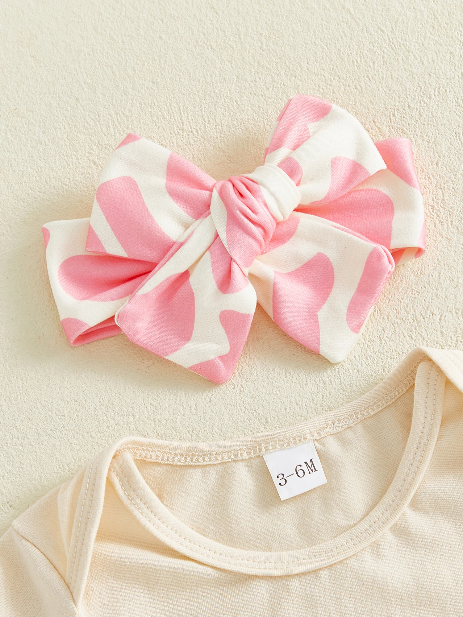 Baby Girl Western Birthday Outfit Printed Short Sleeve Romper Tassel Shorts and Bow Headband 3 Piece SetSize (cm)